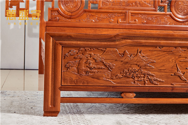 大紅酸枝黑框松鶴延年羅漢床